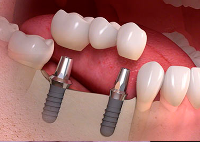 Quando há perda de dentes vizinhos, dois implantes podem devolver três dentes fixos, com conforto, estabilidade e estética natural, sem soluções removíveis.